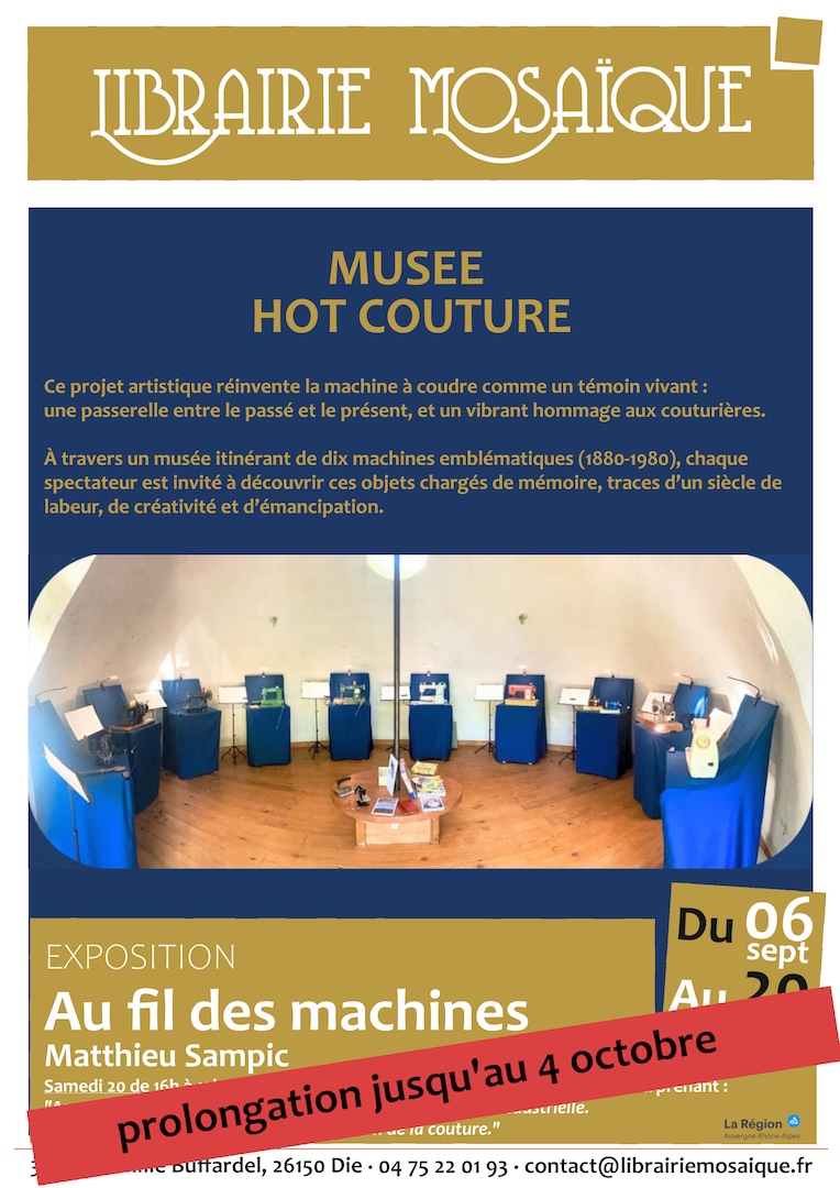 Ce projet artistique réinvente la machine à coudre comme un témoin vivant : une passerelle entre le passé et le présent, et un vibrant hommage aux couturières. À travers un musée itinérant de dix machines emblématiques (1880-1980), chaque spectateur est invité à découvrir ces objets chargés de mémoire, traces d’un siècle de labeur, de créativité et d’émancipation.